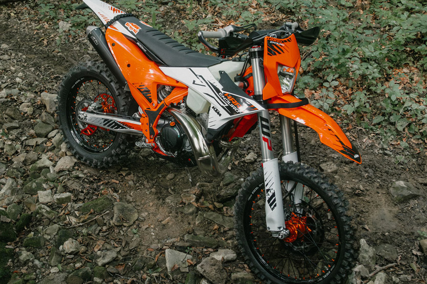 KTM 300 EXC Hardenduro je podle KTM stroj, který můžete vybalit z krabice a absolvovat s ním rovnou nějaký závod, na který by měla být již z výroby připravena. Oproti 6Days obsahuje některé věci navíc. Některé ovšem má i 6Days, ale pro Hardenduro je KTM explicitně vyzdvihuje, jako například "oranžový rám".
